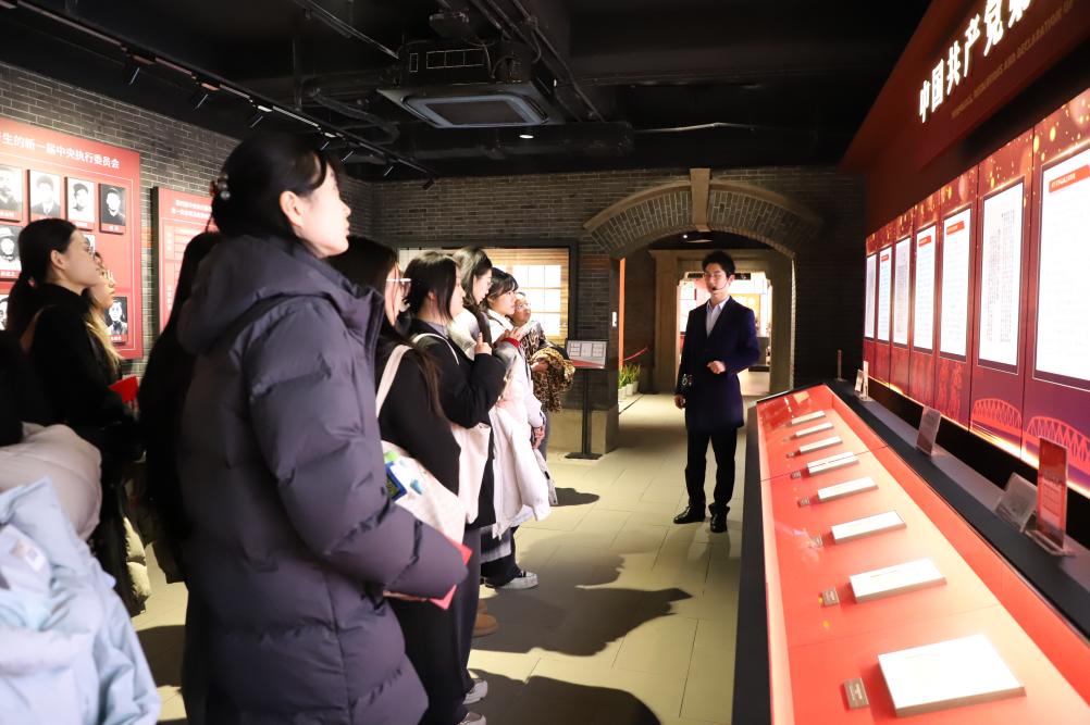 12月17日下午,人文学院23名新发展党员在学院党委副书记、副院长戚静的带领下,走进中共四大纪念馆,开展了一场沉浸式、体验式的入党宣誓活动,学院组织员李妍、2024级本科辅导员傅蓉一同参加活动。