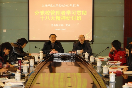 为了认真学习贯彻十八大精神,进一步发挥党校教育培训功能,推进我校学生党建工作,3月14日至16日,组织部、党校联合举办了2013年分党校管理者学习贯彻党的十八大精神研讨班。各分党校副校长、组织员共31人参加了研讨。
