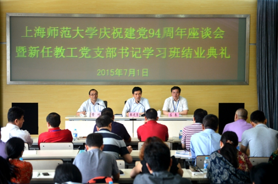 7月1日下午,学校在会议中心二号报告厅举行庆祝建党94周年座谈会暨新任教工党支部书记学习班结业典礼,全体新任教工党支部书记参加。校党委书记滕建勇出席并作重要讲话。