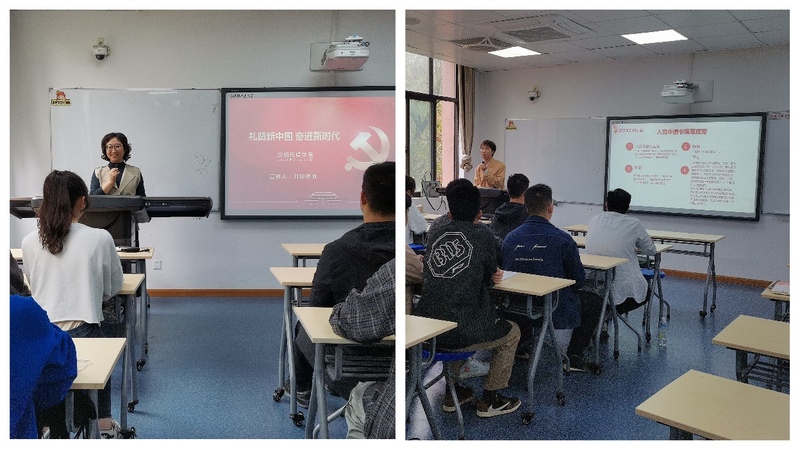 第五教工支部书记、文化产业管理专业教师王元老师以十一期间的国产电影作为切入点,结合现实问题,为新生们阐释了中国共产党的性质、宗旨,以及为什么要加入中国共产党。之后,讲解了发展党员的程序和标准,让同学们更为直观地了解了加入共产党的流程。最后讲述了“怎样才能加入中国共产党”,对新生们提出要求,让同学们明确了加入中国共产党的目标。