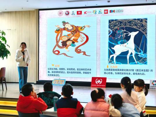 黄色,是文明的底色、传承的本色。3月22日,“黄色拼图·敦煌非遗传承课——小小画匠绘马魂”主题活动开启文化之旅,陶鑫灵、曾慧燕、郁越老师担任主讲,以初识、解码、创绘、守护四大板块为脉络,带领孩子们通过敦煌盲盒破冰、影像探秘初识敦煌艺术,解锁壁画千年不朽的技艺密码;在创绘环节融合敦煌美学与社会主义核心价值观,绘制“五福敦煌马”;更在聆听樊锦诗先生事迹后,立下文化传承的庄严承诺,让文化自信的种子在心中生根,以千年文脉滋养少年担当。
